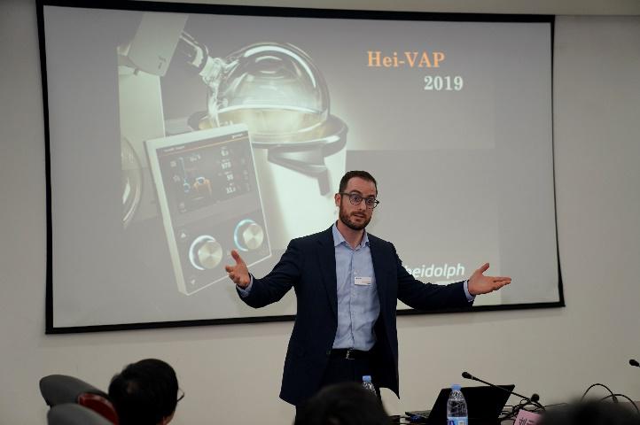接下來,Heidolph亞太區(qū)銷售經(jīng)理 - Thomas Bhar針對Heidolph此次推出的兩款旋轉(zhuǎn)蒸發(fā)儀的功能及應(yīng)用與參會的科研工作者進行了詳細的交流。