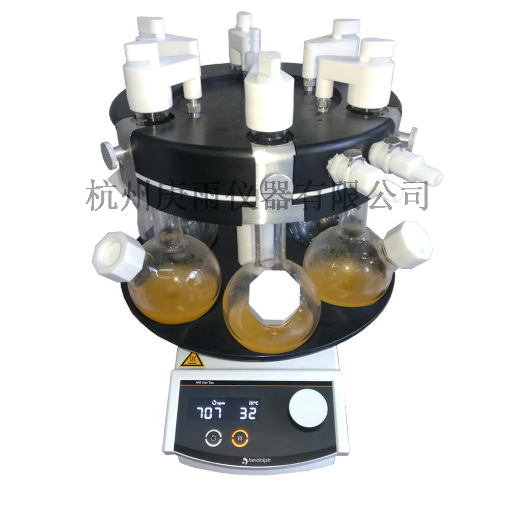 2、可以選擇6個5ml,10ml,25ml,50ml,100ml,170ml和250ml的燒瓶,也可以在同一系統(tǒng)中自由組合燒瓶型號。