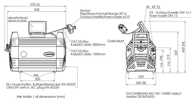 MV 10C VARIO select - 抽氣曲線 (100升容積)
