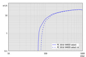 PC 3016 VARIO select - 抽氣曲線 (100升容積)