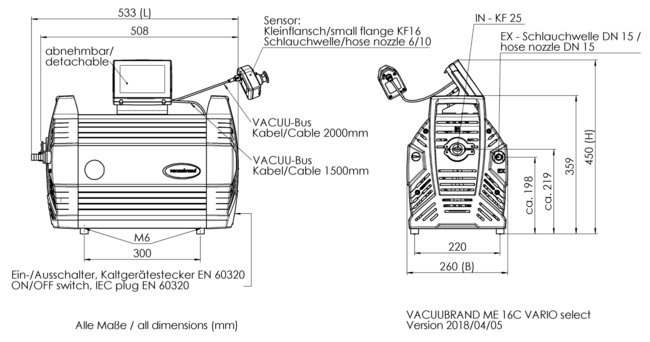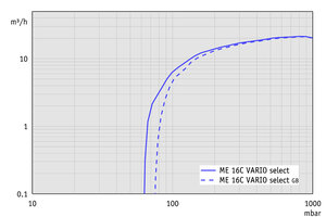 ME 16C VARIO select - 抽氣曲線 (100升容積)