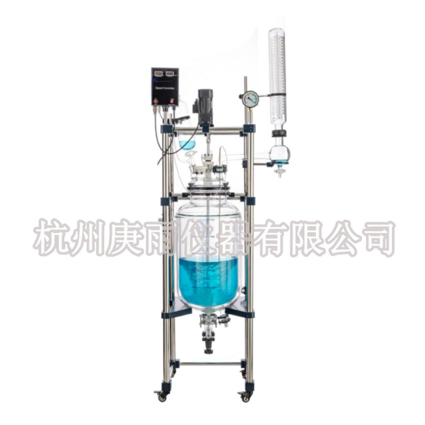 本機(jī)具有電動(dòng)恒速攪拌系統(tǒng)、冷凝、滴加系統(tǒng),釜體夾層需外接加熱或制冷的循環(huán)設(shè)備。在攪拌物料的同時(shí),通過(guò)夾層注入循環(huán)的熱溶液或冷卻液,對(duì)釜內(nèi)的物料進(jìn)行恒溫的加熱或制冷。物料進(jìn)行加熱反應(yīng)時(shí),在真空條件下可以提高蒸發(fā)效率(需連接真空裝置),溶媒蒸汽經(jīng)玻璃冷凝盤管時(shí)冷卻成液體(需連接冷卻裝置),可回流到釜內(nèi),也可通過(guò)回流彎頭下部閥門進(jìn)行回收。反應(yīng)完畢,物料可從釜底的側(cè)出料口放出。