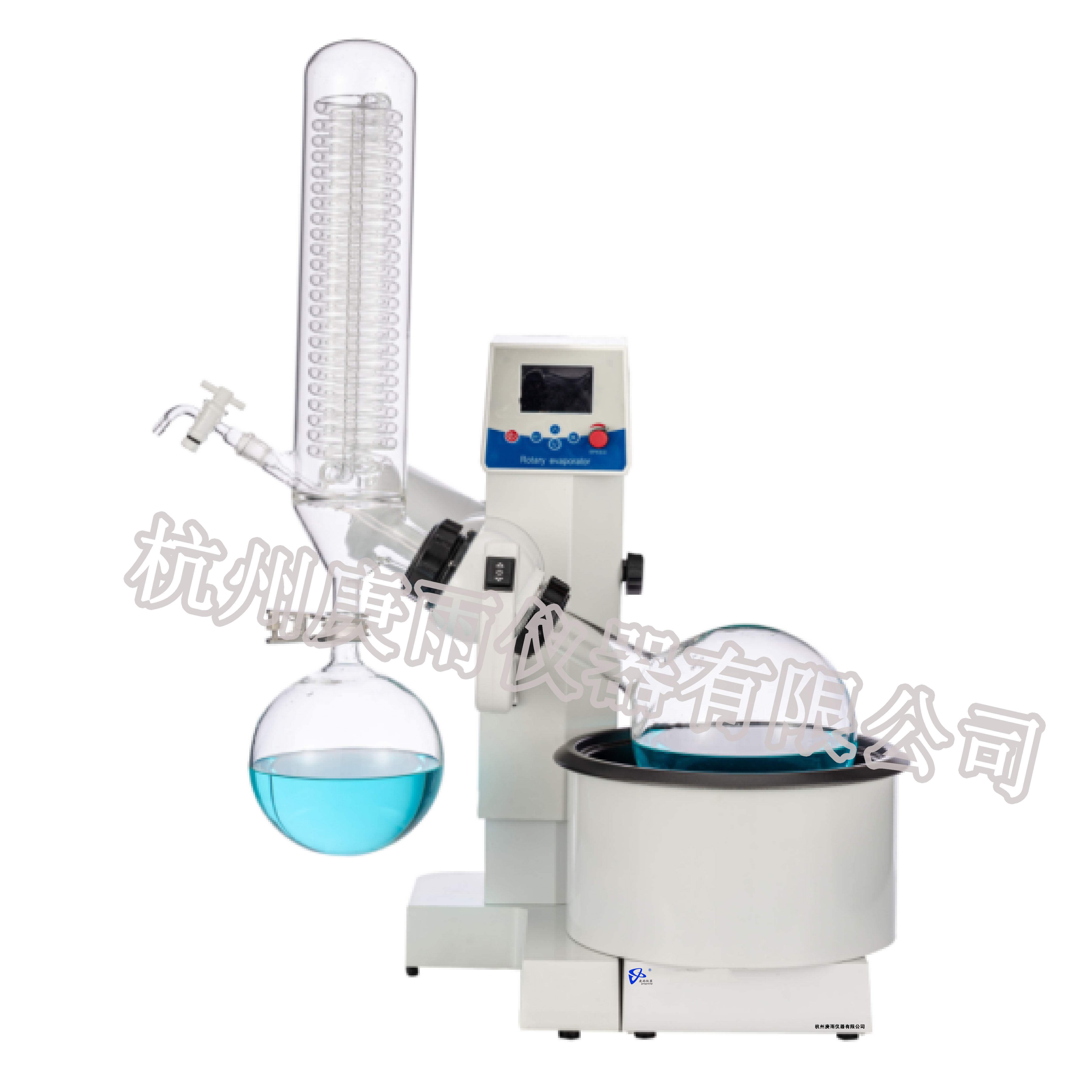 蒸發(fā)瓶恒速旋轉(zhuǎn),水浴鍋恒溫加熱,在此條件下:物料在蒸發(fā)瓶內(nèi)壁形成大面積均勻薄膜,在真空條件下可以提高蒸發(fā)效率(需連接真空裝置),溶媒蒸汽經(jīng)玻璃冷凝盤管時冷卻成液體(需連接冷卻裝置),回收于收集瓶。