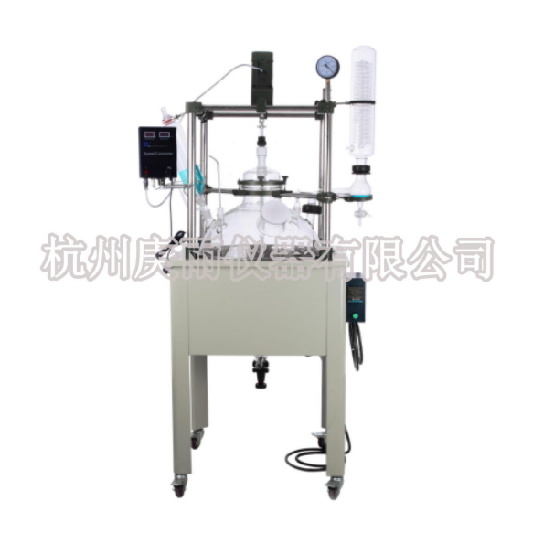 本機(jī)具有電動恒速攪拌系統(tǒng)、冷凝、滴加系統(tǒng)、加熱浴鍋。在攪拌物料的同時(shí),浴鍋對釜內(nèi)物料進(jìn)行加熱,在真空條件下可以提高蒸發(fā)效率(需連接真空裝置),溶媒蒸汽經(jīng)玻璃冷凝盤管時(shí)冷卻成液體(需連接冷卻裝置),可回流到釜內(nèi),也可通過回流彎頭下部閥門進(jìn)行回收。反應(yīng)完畢,物料可從釜底的側(cè)出料口放出。