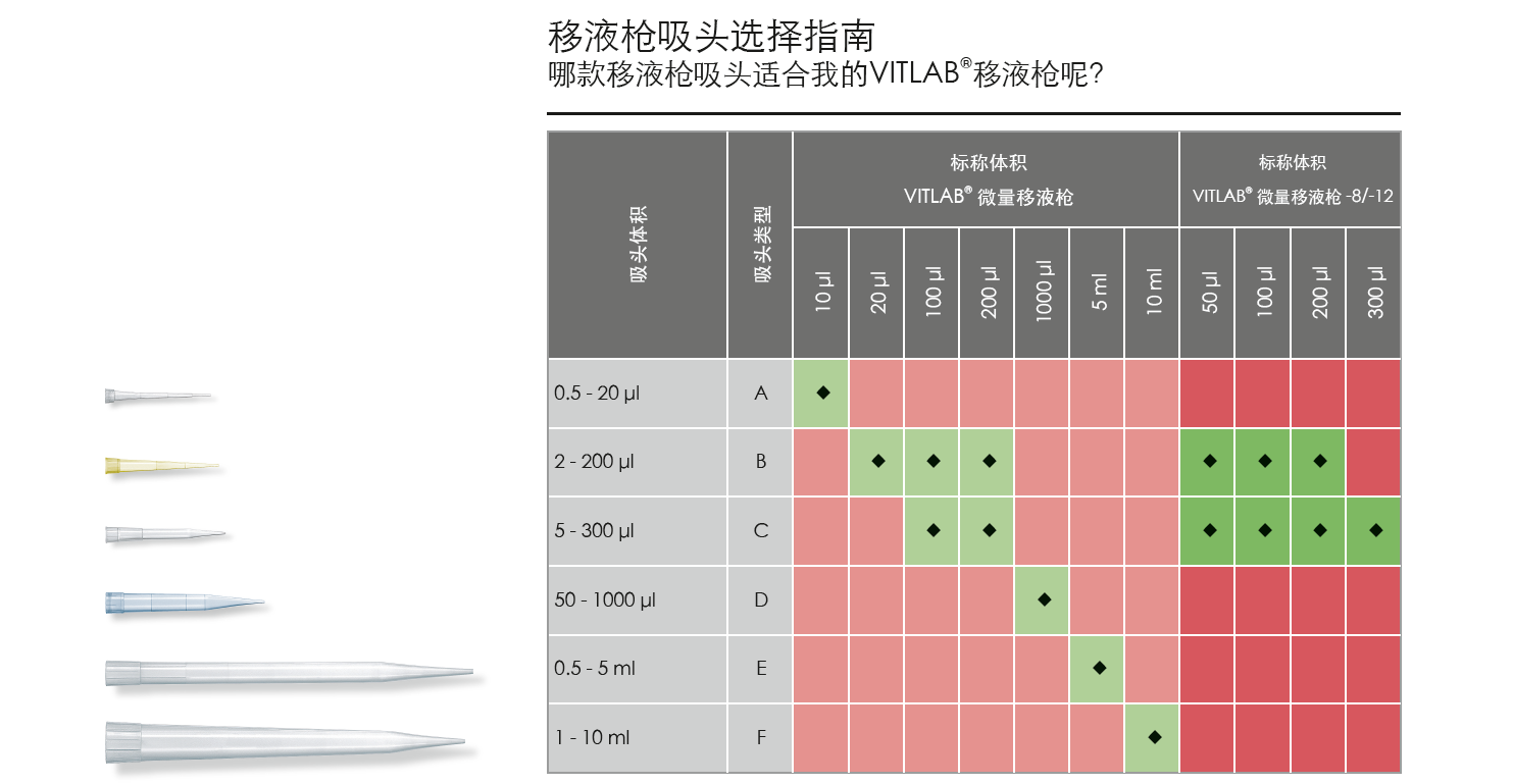 移液槍槍頭,優(yōu)質(zhì),帶CE 標識,符合 IVD指南 98/79 EC ,最適于VITLAB®微量移液槍。