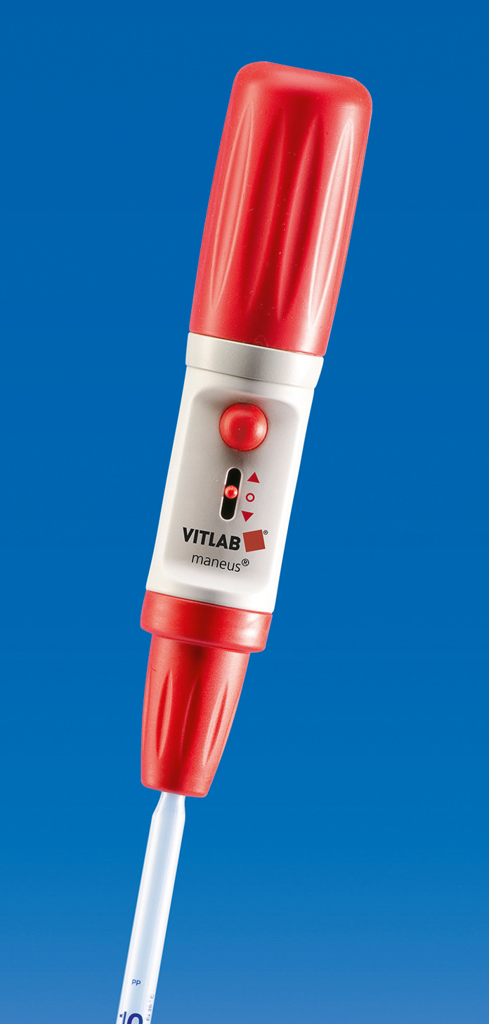 VITLAB maneus®控制器使左/右手均可省力且簡單地操作大肚和刻度移液管。安全簡單的操作使無經驗使用者亦可精確地適應彎液面。