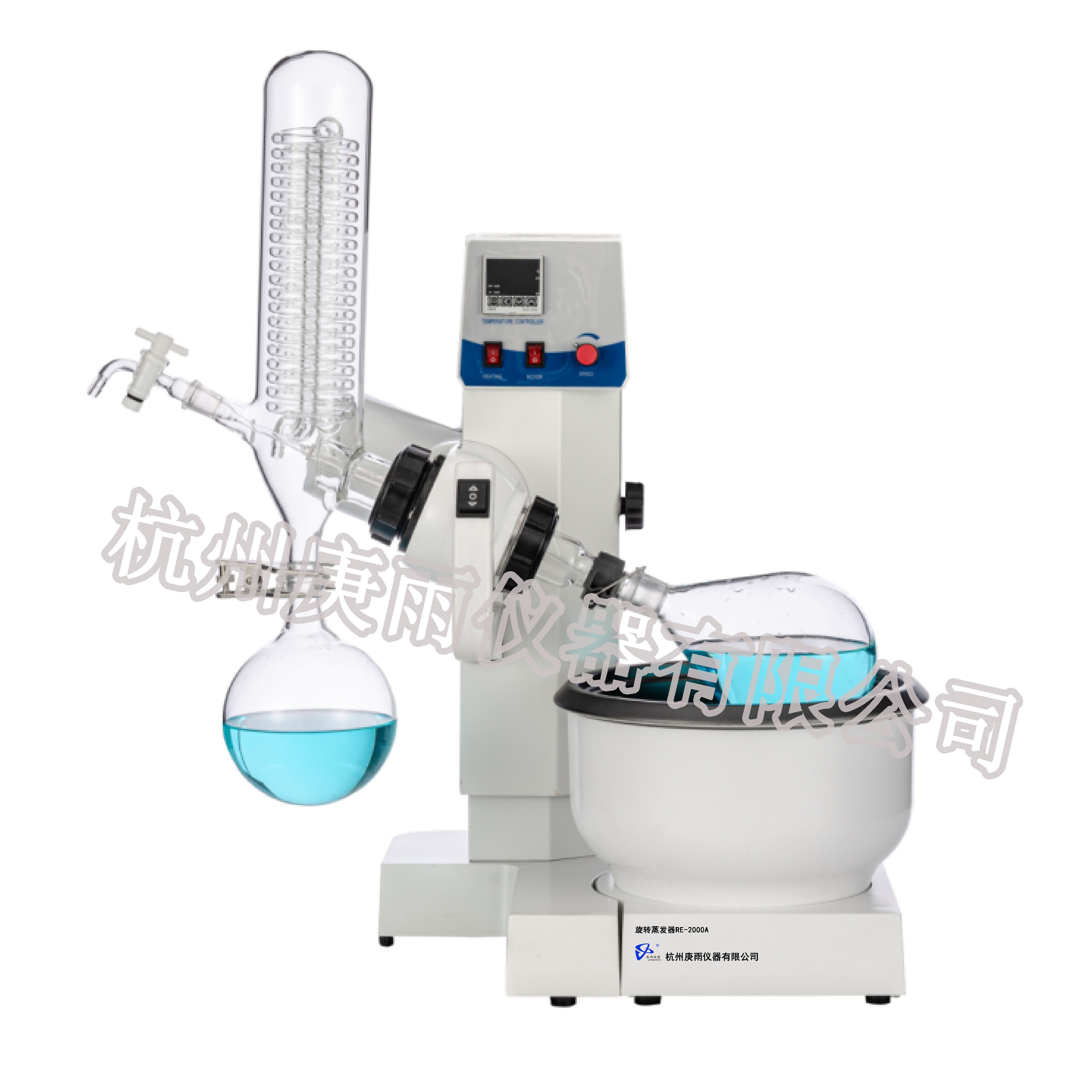 蒸發(fā)瓶恒速旋轉(zhuǎn),水浴鍋恒溫加熱,在此條件下:物料在蒸發(fā)瓶內(nèi)壁形成大面積均勻薄膜,在真空條件下可以提高蒸發(fā)效率(需連接真空裝置),溶媒蒸汽經(jīng)玻璃冷凝盤管時冷卻成液體(需連接冷卻裝置),回收于收集瓶。