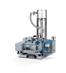 RC 6化學(xué)雜交泵是將一個雙級旋片泵和一個雙級化學(xué)隔膜泵結(jié)合在一起。隔膜泵用以維持油腔內(nèi)的真空度,使溶劑蒸汽的分壓保持在它們的露點之下,大大減少氧化性或腐蝕性氣體的冷凝。因此RC 6化學(xué)雜交泵和常規(guī)的旋片泵相比,有更大地溶劑蒸汽抽取能力及對腐蝕氣體的耐受性。PC 3/RC 6版本 - 用于大量蒸汽 - 在進氣前端連接冷阱用以捕獲蒸汽冷凝物。