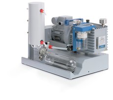 RC 6化學(xué)雜交泵是將一個(gè)雙級(jí)旋片泵和一個(gè)雙級(jí)化學(xué)隔膜泵結(jié)合在一起。隔膜泵用以維持油腔內(nèi)的真空度,使溶劑蒸汽的分壓保持在它們的露點(diǎn)之下,大大減少氧化性或腐蝕性氣體的冷凝。因其有效的溶劑回收效果,PC 8/RC 6真空系統(tǒng)具有優(yōu)異的環(huán)境友好性。
