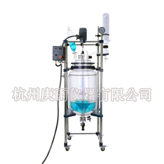 本機具有電動恒速攪拌系統(tǒng)、冷凝、滴加系統(tǒng),釜體夾層需外接加熱或制冷的循環(huán)設備。在攪拌物料的同時,通過夾層注入循環(huán)的熱溶液或冷卻液,對釜內的物料進行恒溫的加熱或制冷。物料進行加熱反應時,在真空條件下可以提高蒸發(fā)效率(需連接真空裝置),溶媒蒸汽經玻璃冷凝盤管時冷卻成液體(需連接冷卻裝置),可回流到釜內,也可通過回流彎頭下部閥門進行回收。反應完畢,物料可從釜底的側出料口放出。