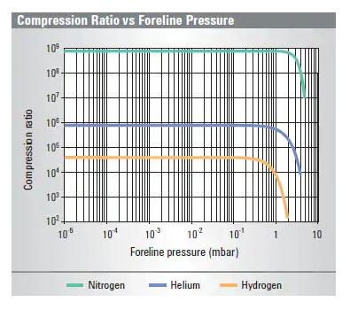 Turbo-V 2300 TwisTorr 壓縮比與前級(jí)壓力關(guān)系圖