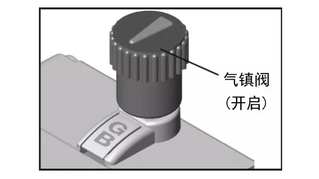 ■當(dāng)氣鎮(zhèn)閥帽上的箭頭指向“GB”時(shí),氣鎮(zhèn)閥開啟。