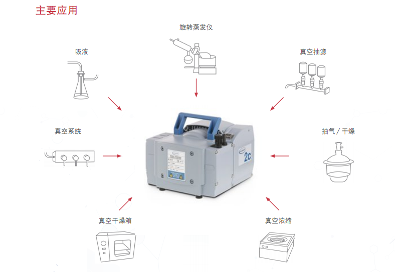 德國VACUUBRAND的MZ 2C NT常見的應(yīng)用包括和旋轉(zhuǎn)蒸發(fā)儀、真空干燥箱、離心濃縮儀等設(shè)備連用,抽取化學(xué)腐蝕性的氣體或蒸汽。